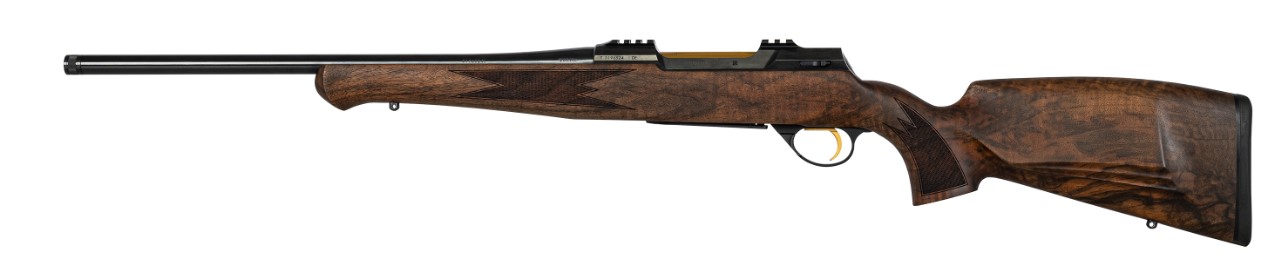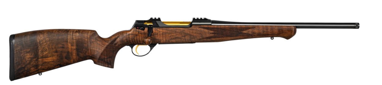 Die attraktive, goldene Farbe und die hohe Abriebfestigkeit dieser Beschichtung eignen sich hervorragend für die stark beanspruchten Komponenten Verschlusshülse, Schlagbolzen und das Abzugszüngel. Abgerundet wird dieses exklusive Gesamtpaket mit einer eleganten Kammergriffkugel aus schön gewachsenem Nussbaumholz sowie den ausgesuchten Premium-Schafthölzern, welche im Lieferumfang von Gold Line Konfigurationen enthalten sind. 1782 Gold Line.