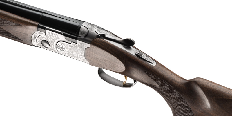 Die Gravur wird mit moderner Beretta-Technologie realisiert: ein 5-achsiger Laser, der in der Lage ist, abgerundete Oberflächen mit perfekter Musterkontinuität zu gravieren. Das von Beretta-Meistergraveuren kreierte Motiv besteht aus modern gestalteten Blattranken, angereichert mit Weinlaub und Traubendolden als symbolische Glücksbringer. Neben der Basküle ist auch der Abzugsbügel, der Verschlusshebel und der Vorderschaft mit diesen Motiven dekoriert.