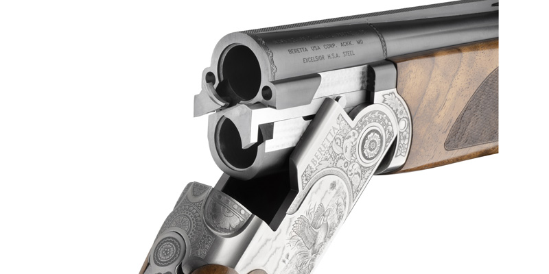 Die schlanke und elegante Basküle der 687 Silver Pigeon III mit dem bewährtem Flankenverschluss zeichnet sich durch die Beretta-typischen, trapezförmigen Schulterstücke und den konischen, doppelten Verschlussbolzen aus.