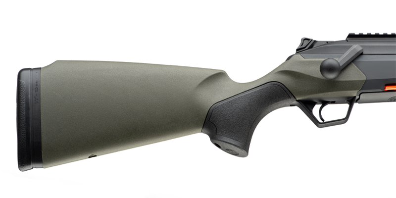 Das zweireihige Magazin aus gut sichtbarem, orangefarbenem Polymer bietet auch bei Magnumkaliber eine Kapazität von bis zu 5 Patronen. Es lässt sich mit einem doppelten Auslöseknopf lösen, der ein versehentliches Herausfallen bei der Jagd verhindert.