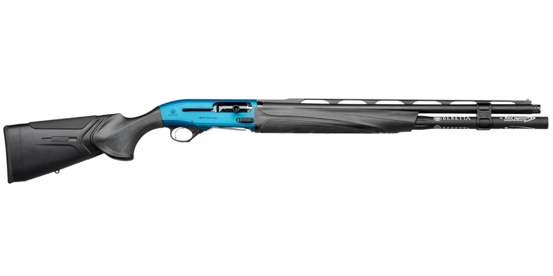 Das blau eloxierte Ergal-Gehäuse kombiniert Leichtigkeit mit extremer Robustheit und Zuverlässigkeit. Im Inneren befindet sich das Nachladesystem, das bewährte Gassystem mit rotierendem B-Link- Kopf-Verschlusssystem, dass eine 36% höhere Taktgeschwindigkeit aufweist als jede andere halbautomatische Flinte, es ist zuverlässig und präzise Schuss für Schuss, selbst bei leichten Munitionsladungen.