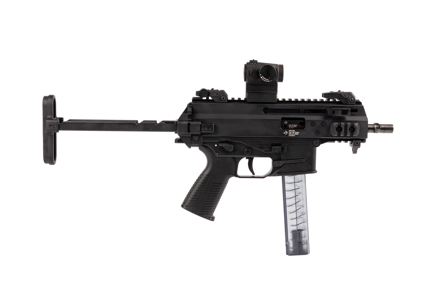 Das APC9 K PRO ist die nächste Evolutionstufe der bewährten APC9 Familie. Mit den nicht mitlaufenden beidseitigen Spanngriffen, sowie seinen diversen anderen Eigenschaften, erfüllt das APC9 K PRO die heutigen Anforderungen der Polizei und ist somit auch für Sportschützen eine attraktive Waffe. Die kompakte K-Version ist durch den kürzeren Lauf besonders führig.