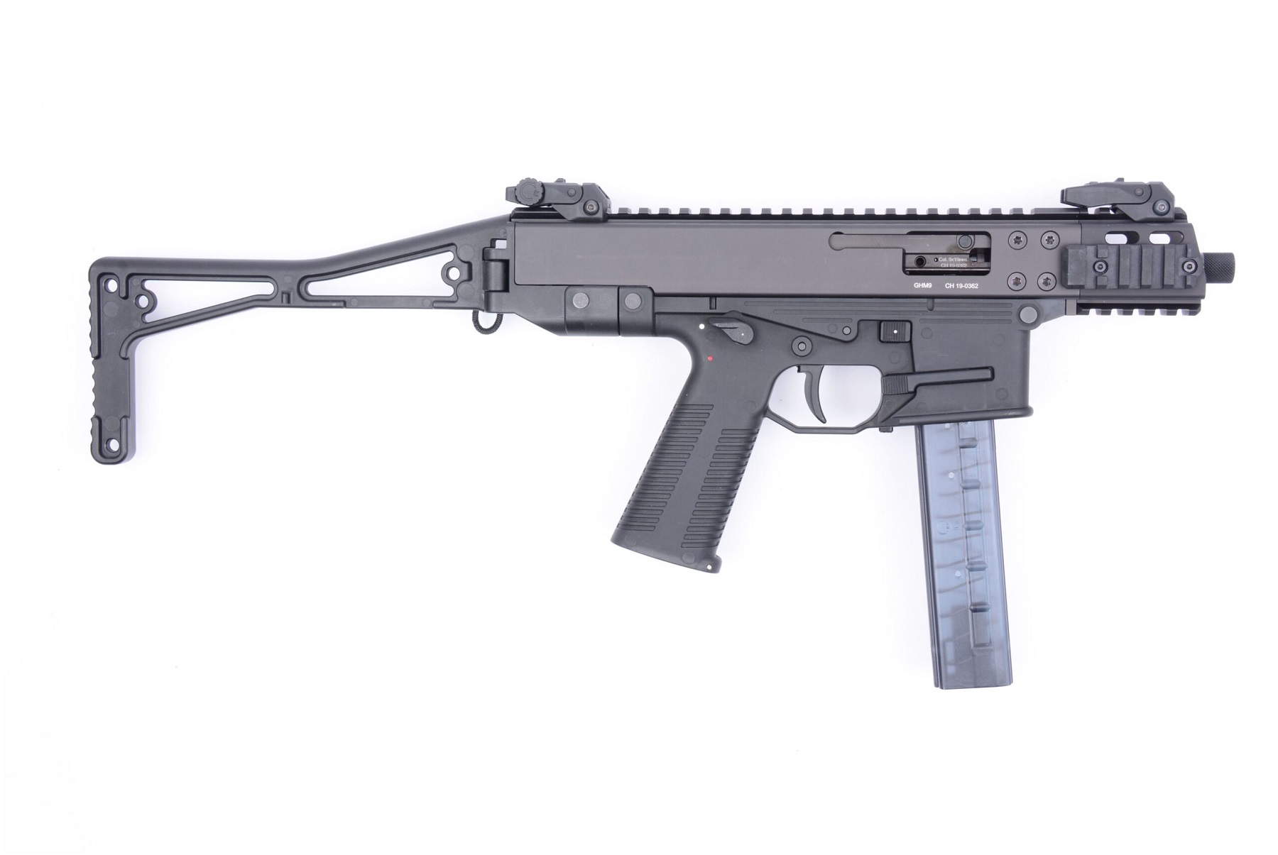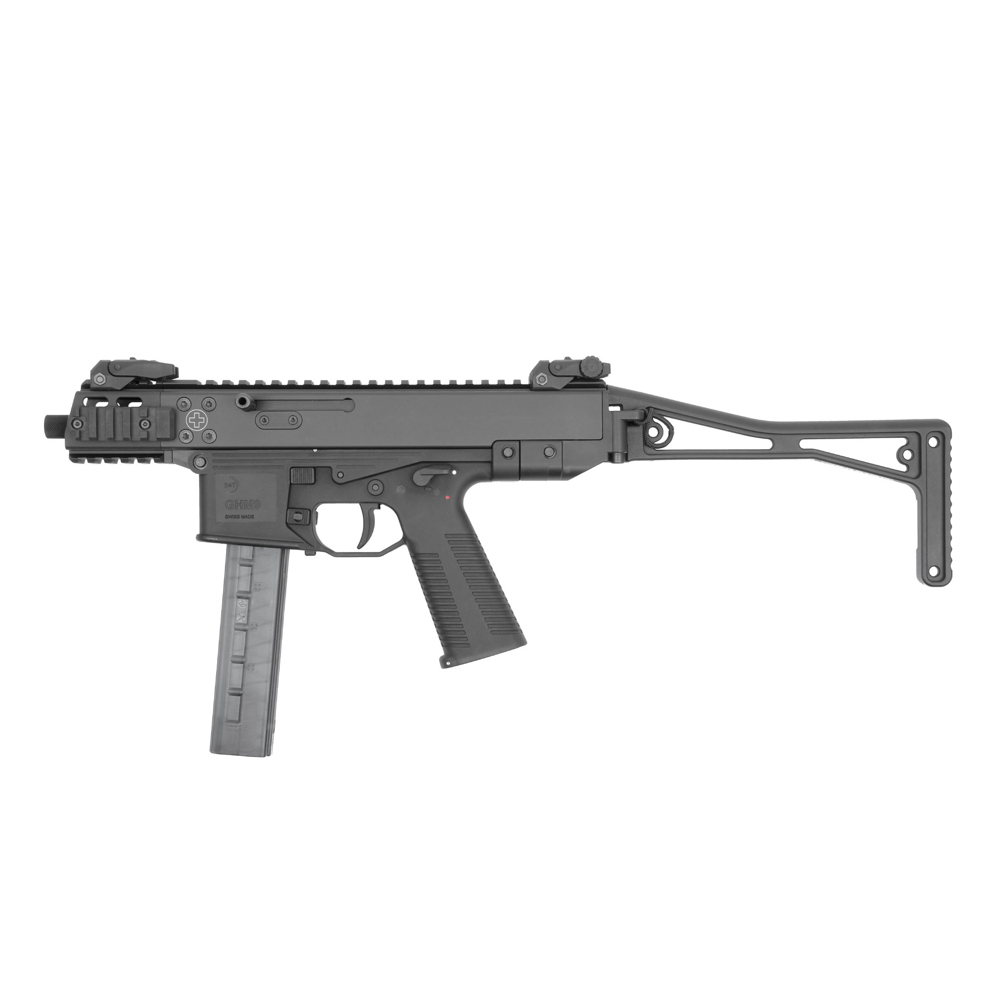 Die GHM9 Compact ist ein sportlicher 9x19mm Karabiner mit integrierter klappbarer Schulterstütze. Die GHM9 Compact eignet sich perfekt als preiswerter und sportlicher Halbautomat für dynamische Disziplinen aber auch einfach nur zum Spassschiessen.Aufgrund ihres kurzen Laufes von 110 mm ist die Waffe besonders kompakt und führig.