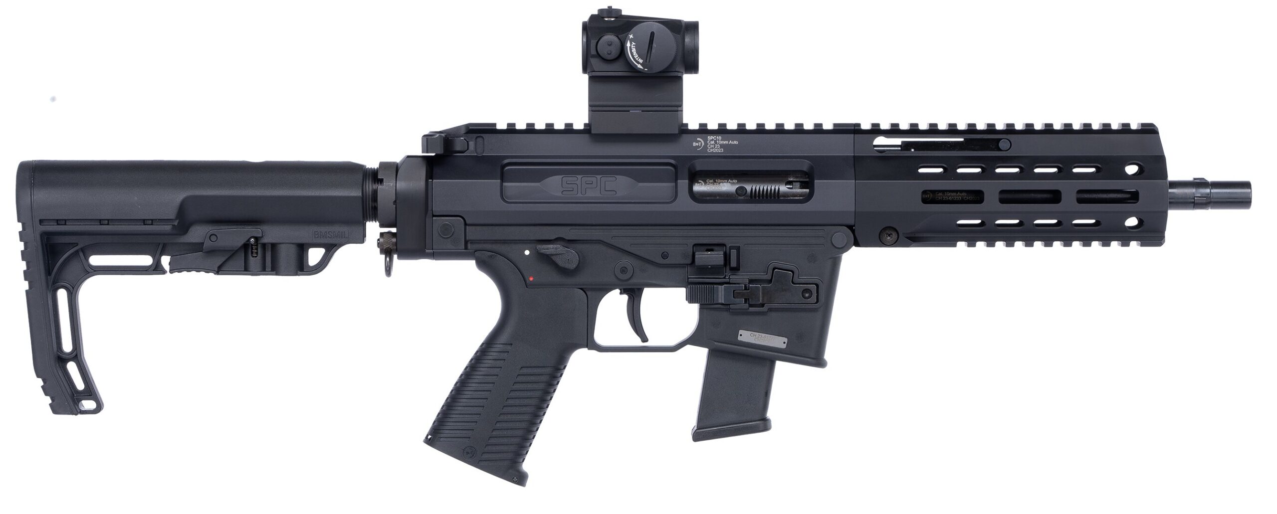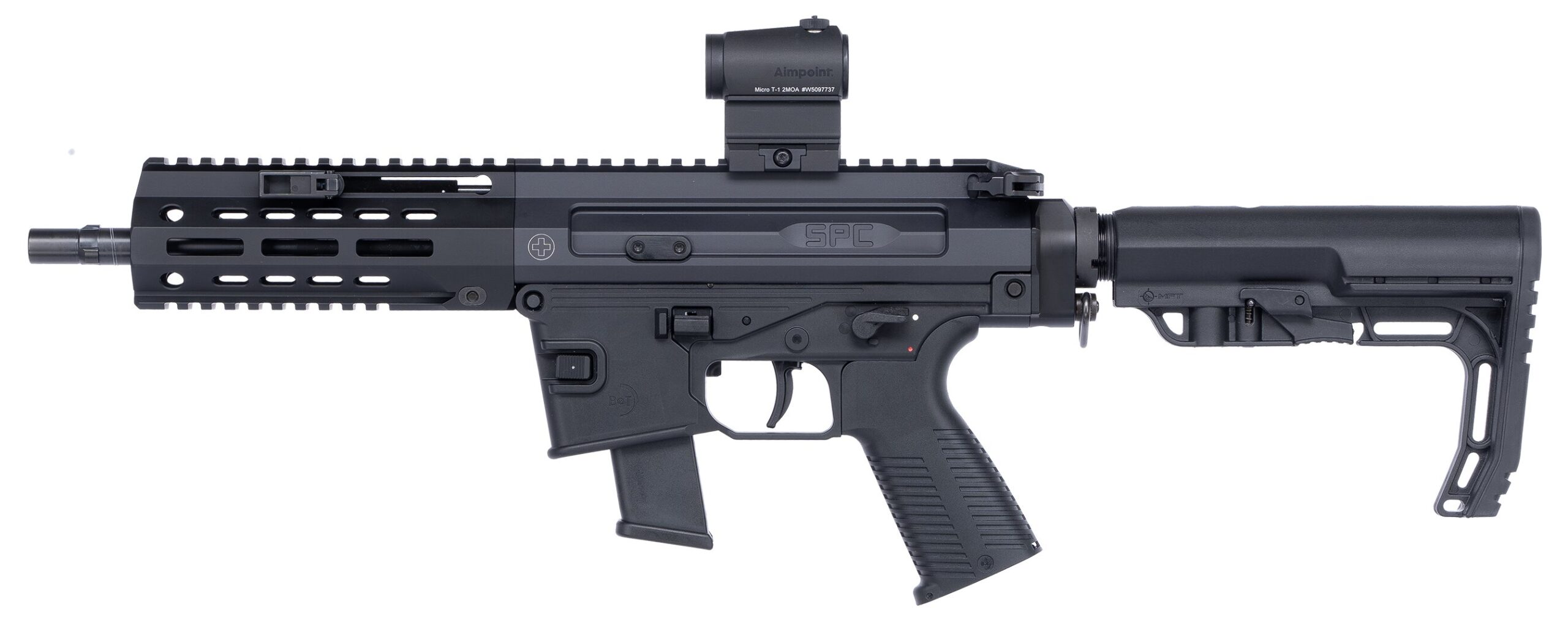 Perfekte Mischung: Durchladehebel im AR15/M4 Stil, Griffstück für B&T Magazine, Teleskopschulterstütze und das bewährte APC PRO Design. Das SPC10 ist eine hochinteressante Kombination von bewährten Merkmalen für alle Freunde des am Gehäusenede liegenden Durchladehebels.