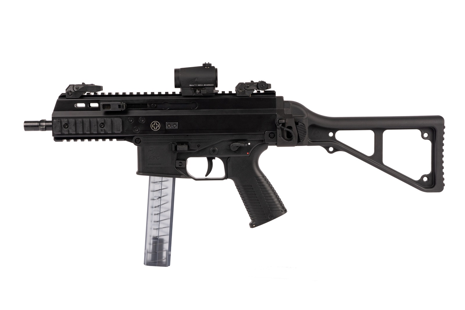 Das APC9 PRO ist die Weiterentwicklung des bewährten APC9 CLASSIC. B&T hat hierbei die Wünsche der Anwender aus dem Bereich Behörden/Spezialeinheiten berücksichtigt. Auffälligstes Merkmal dieser Weiterentwicklung ist der beidseitige, klappbare, nicht mitlaufende Ladehebel.