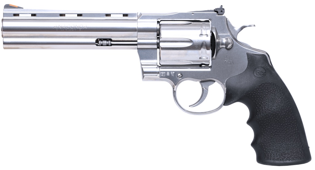 Colt's beliebte Snake Gun Revolver Serie erhält mit der aktualisierten Anaconda einen neuen Zuwachs. Der Anaconda wurde komplett überarbeitet, um ein vergrössertes Python-Schloss zu verwenden. Dieser DA-Revolver ist mit einem soliden Edelstahlrahmen ausgestattet, der für Stärke und Haltbarkeit sorgt und seinem Stammbaum gerecht wird. Erleben Sie das neue Schloss mit linearer Blattfeder für einen glasklaren Abzug. Mit den rückstossdämpfenden Hogue-Griffschalen und der verstellbaren, austauschbaren Visierung ist dieses Modell auf dem Schiessstand und im Wald cool und komfortabel. Eine angesenkte Laufmündung bietet Schutz und der Rahmen ist mit Bohrungen und Gewinden für die Montage von Optiken versehen, was die Anaconda zu einer unaufhaltsamen Jagdwaffe macht (wo erlaubt).