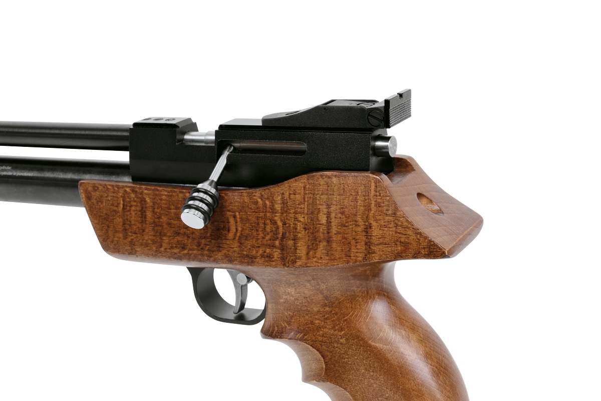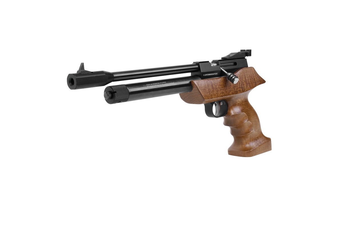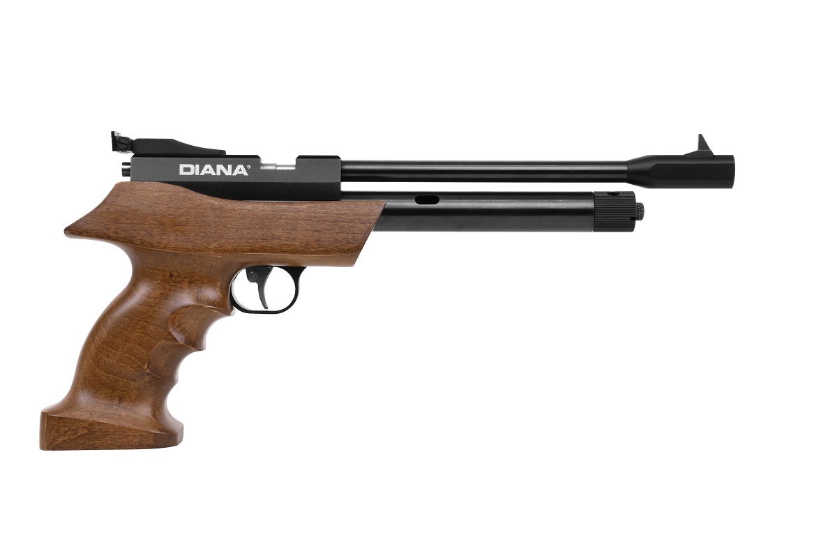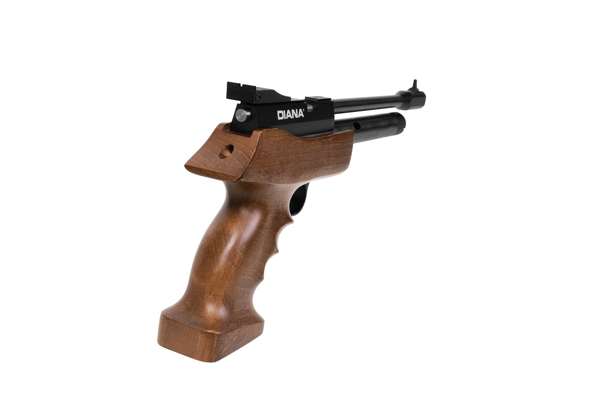 Die DIANA airbug ist eine leistungsstarke Druckluftpistole mit Co2-Antrieb und einem ergonomischen Griffstück aus Holz. Die Pistole kann mit einer Einlage im Einzelschuss-Modus und mit dem mitgelieferten 9-Schuss Trommelmagazin betrieben werden und wird inkl. Waffentasche geliefert. Die 11mm Prismenschiene ermöglicht den Anbau einer passenden Optik.