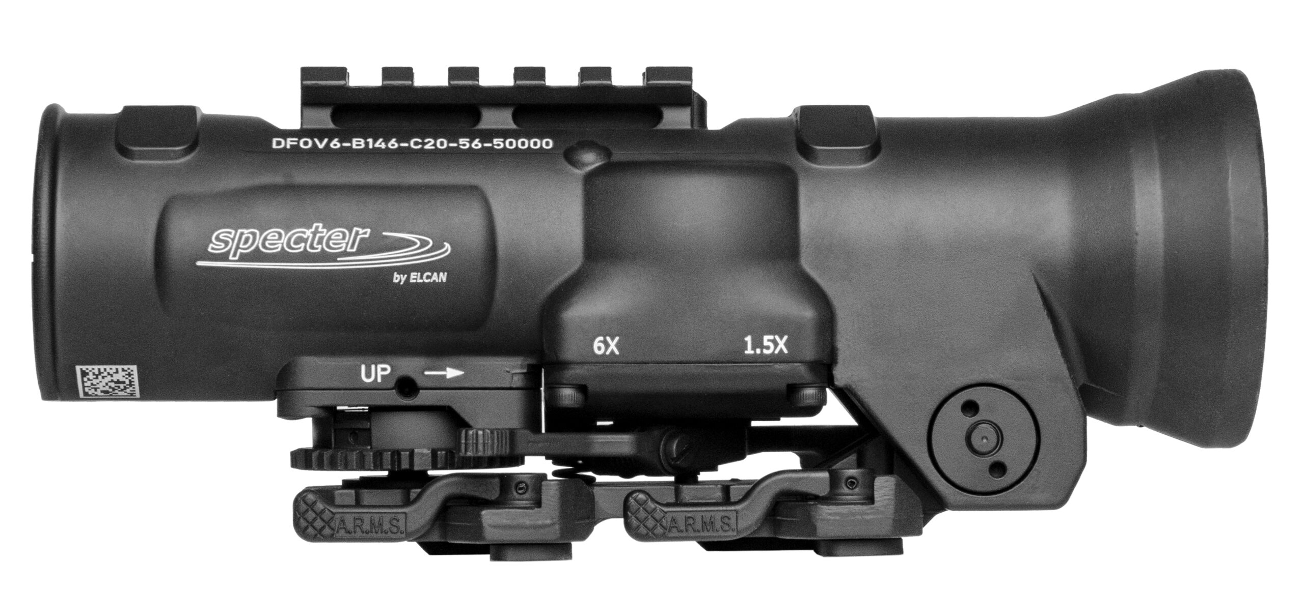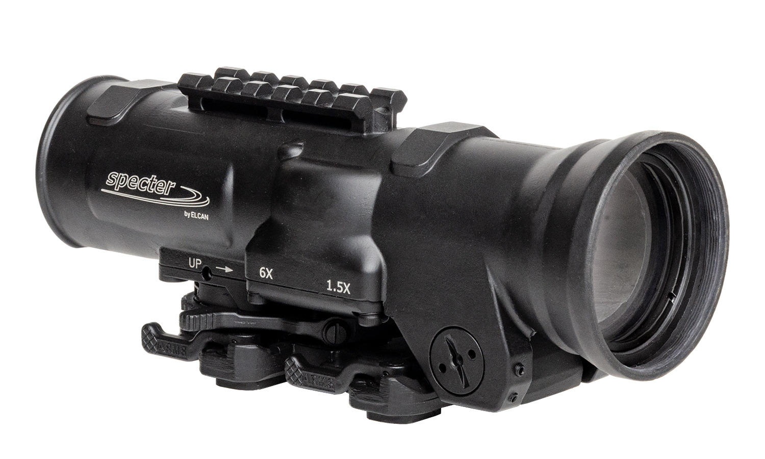 Das ELCAN SpecterDR 1.5x/6x ist die zweite Evolution in der Familie der Dual Role Optical Sights. Weiterentwickelt auf der Basis des kampferprobten und bewährten SpecterDR Designs bietet das SpecterDR 1.5x/6x grössere Vergrösserung um eine höhere Präzision und längere Reichweiten zu erreichen. Gleichzeitig bietet das SpecterDR 1.5x/6x das einmalig grosse und für ELCAN typische Sichtfeld für kurze Kampfentfernung (CQB). Seit der Modelloptimierung wird jedes Elcan zudem mit einer festen Picatinnyschiene auf dem Gehäuse augelifert für die Montage von Rotpunktvisieren.