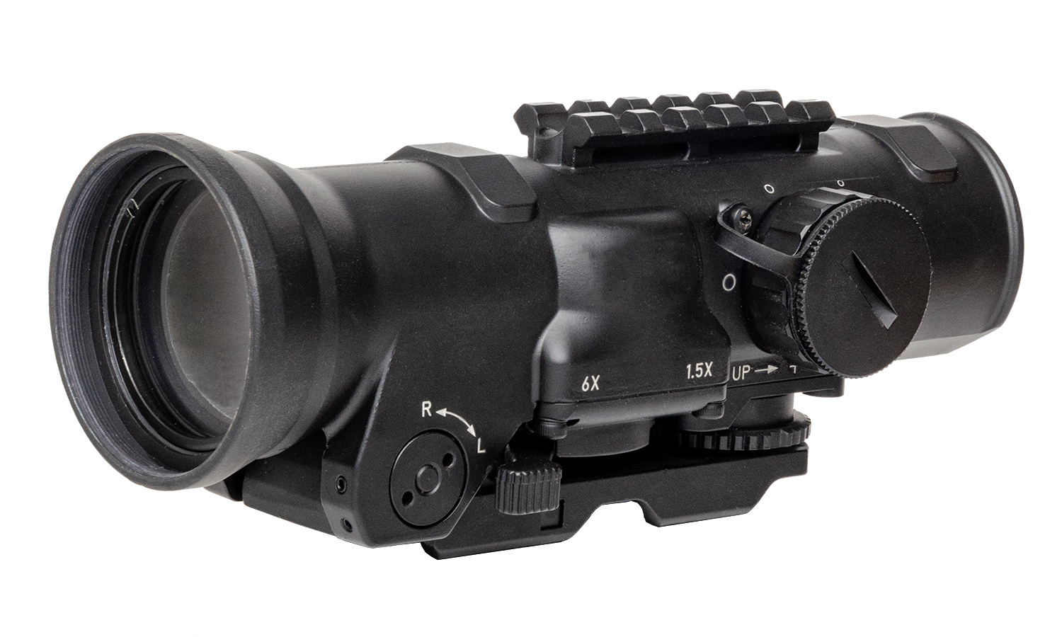 Die Vergrösserung wird über den beidseitig bedienbaren Hebel zwischen 1.5x und 6x umgeschaltet. Die integrierte Montage ist nach MIL-STD 1913 für Picatinnyschienen ausgelegt.