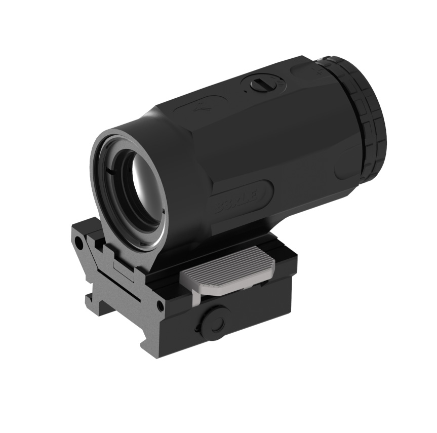 Die abschraubbare Picatinny Montage ist wiederholgenau und lässt sich bei Bedarf dank eines zusätzlich mitgelieferten Adapterstücks in der Höhe verändern. Der massive Klappmechanismus rastet in beiden Verwendungspositionen ein und lässt sich jederzeit durch einen Knopfdruck entriegeln.