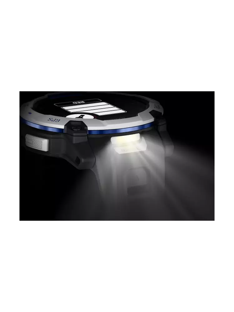 • Mit metallverstärkter Lünette, kratzfestem Glas und integrierter LED-Taschenlampe.