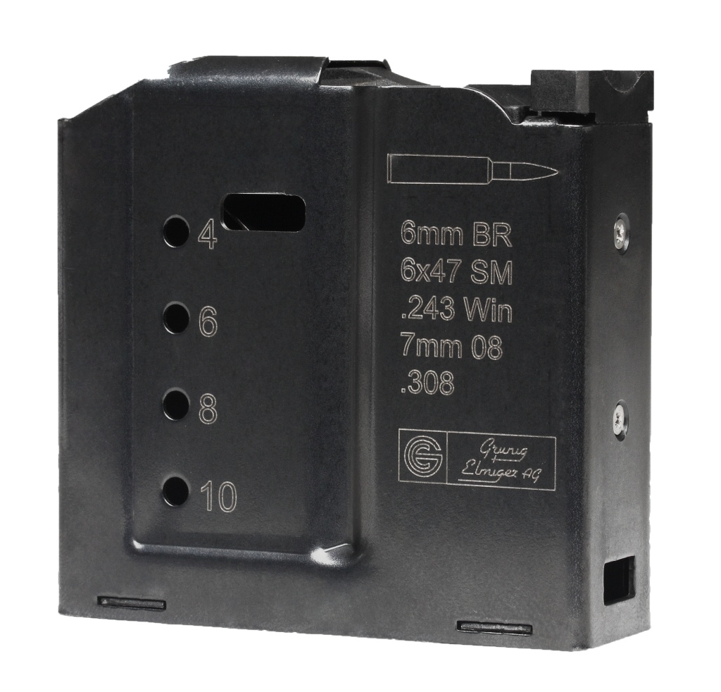 | Kaliber | .308 Win., 6.5 Creedmoor, 6.5×47 Lapua, 6.5×55 SE SE, 6 mm BR, 6×47 SM, 6 XC, 7.5×55 Swiss/GP11, 7 mm-08 Rem. |