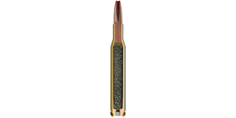 Das monolithische, bleifreie Geschoss aus einer Kupferlegierung (Tombak) ist für eine sehr gute Tiefenwirkung mit hohem Restgewicht, selbst bei Knochentreffern konstruiert.