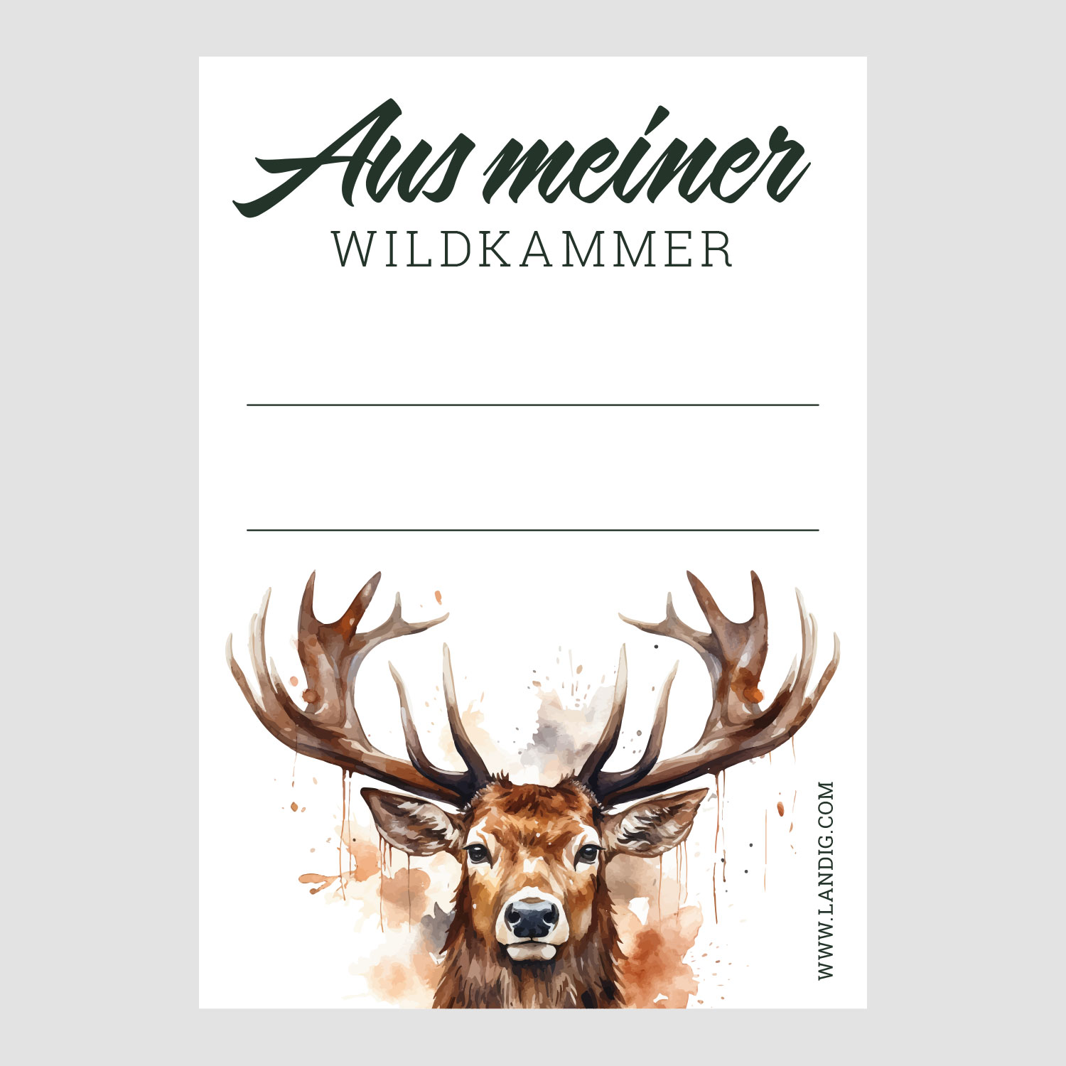 - 6 Motive zur Auswahl: Wildbret / Rehwild / Schwarzwild / Rotwild / Wildkammer / Wildgenuss