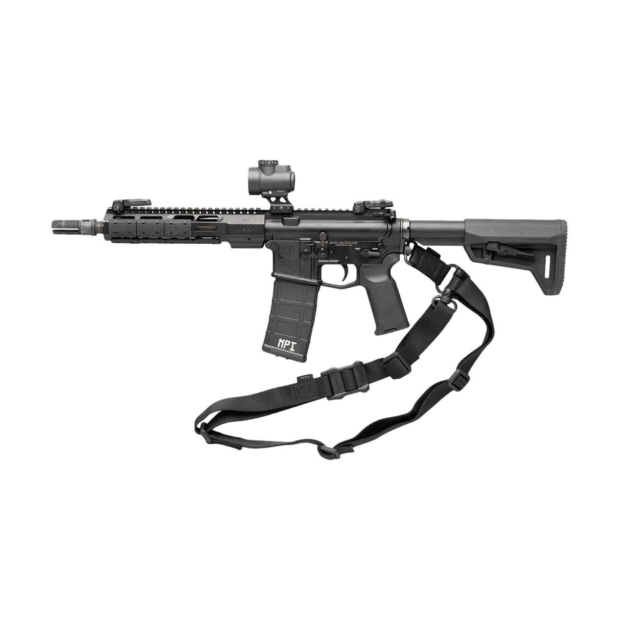 Die MS4 erfüllt dieselben Anforderungen wie die Standard MS3-Schlinge und kann schnell zwischen Ein- und Zweipunktkonfiguration wechseln. Die Materialkonstruktion und die Spezifikationen des MS4 sind identisch mit denen des Standard-MS3, aber anstelle von Magpul Paraclips™ verfügt er über zwei hochbelastbare QD-Riemenbügel mit Druckknopf sowie einen speziellen Verbindungsring aus Stahl, der die Umwandlung von einer in eine Zweipunkt-Konfiguration ermöglicht. Diese Modifikation ermöglicht die Kompatibilität mit QD-Riemenbechern, die üblicherweise an unteren Empfängern, Empfängerendplatten, Hinterschäften und vielen QD-Riemenbefestigungen mit niedrigem Profil nach vorne angebracht sind.