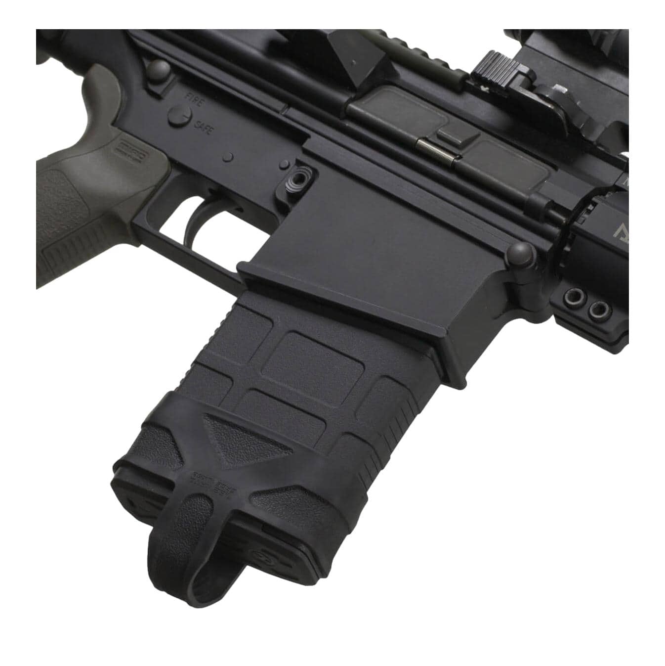 Thermoplastische Schlaufe, die auf der Basis eines Gewehr- oder Unterwaffenmagazins angebracht ist und einen griffigen Griff für unübertroffene Geschwindigkeit und Kontrollierbarkeit bei taktischen Magazinwechseln mit hoher Beanspruchung bietet. Die vertiefte, raue Textur bietet eine positive Grifffläche unter rutschigen oder nassen Bedingungen. Die Fingerschlaufe dient als Stossdämpfer, um das Magazin vor Beschädigungen zu schützen, wenn es vom Gewehr fällt. Bringt Zeitschriften zum Schweigen, die im Beutel nebeneinander aufbewahrt werden.
