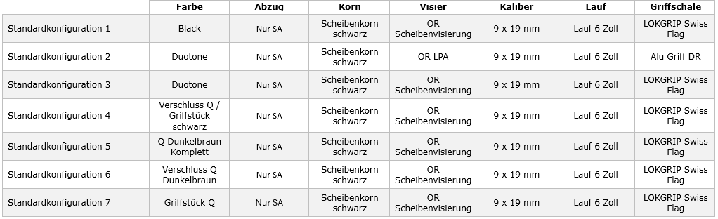 Standardkonfigurations-Ausführungen siehe Tabelle unten