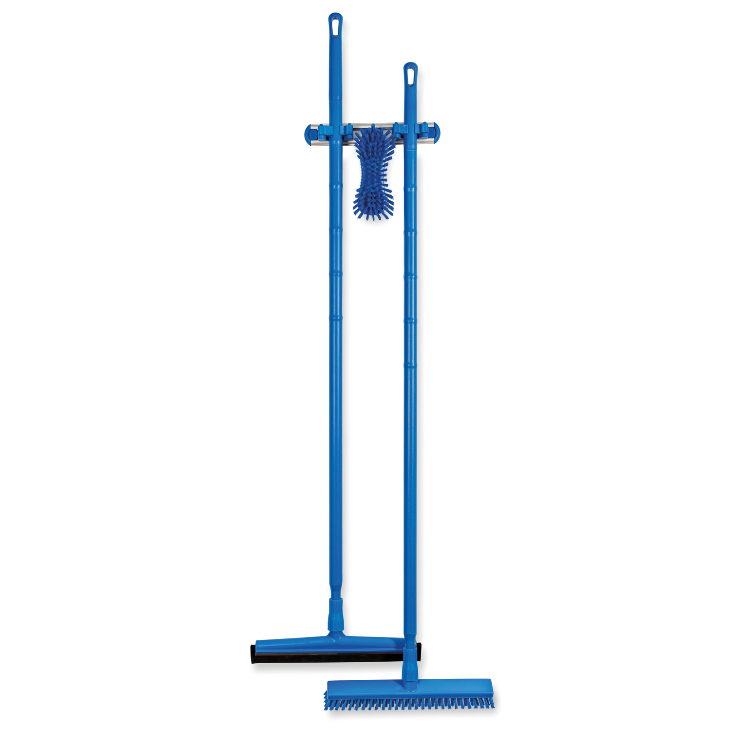 Ideal für die Reinigung Ihres Zerwirkraums: 4-teiliges professionelles Reinigungsset mit passender Wandhalterung – damit ist stets Ordnung garantiert.