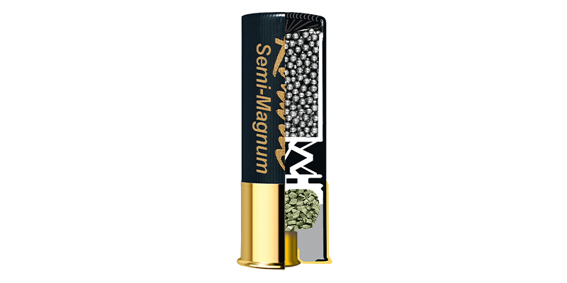 Um dem Jäger für eine normal beschossene Flinte mit der Patronenlagerlänge von 70 mm auch eine höhere Schrotladung zu bieten, ist diese Semi-Magnum-Ladung entwickelt worden. Die Innenballistik ist auf diese Gegebenheiten besonders abgestimmt.