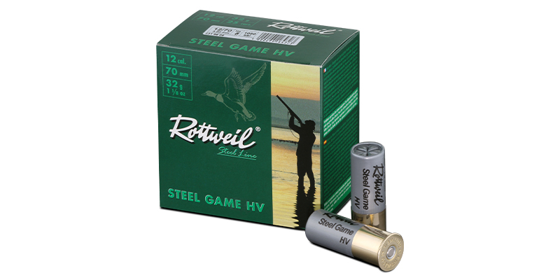 Rottweil hat sein Sortiment der Weicheisenschrotpatronen um eine rasante Laborierung erweitert. Diese bleifreie Patrone mit C.I.P.-gerechtem Weicheisenschrot unterscheidet sich durch die höhere Geschwindigkeit von der Rottweil Steel Game. Sie gibt auch noch bei größeren Schussentfernungen mehr Energie im Ziel ab. Die Rottweil Steel Game HV mit qualifiziertem Weicheisenschrot ist besonders umweltverträglich und wasserwildgerecht.