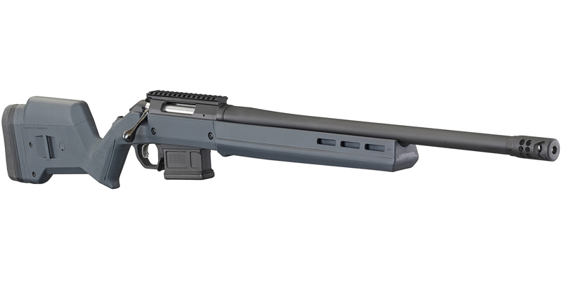 Der schwere Konturlauf (.850" an der Mündung) verfügt über eine Ruger Precision® hybride Gewehrmündungsbremse, um den Rückstoß effektiv zu reduzieren, während Geräusche und Explosionen zur Seite des Schützens minimiert werden.