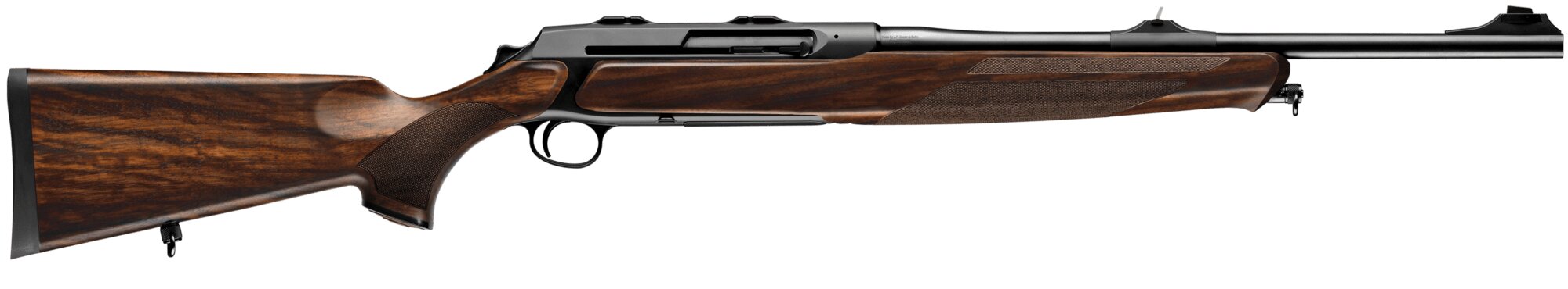 Die S 303 Select mit ihrem Nussbaum-Schaft und Laserline-Maserung ist die Basisvariante der neuen Sauer-Selbstladebüchse und der eleganteste Einstieg in die Welt der effizienten Schalenwildjagd.