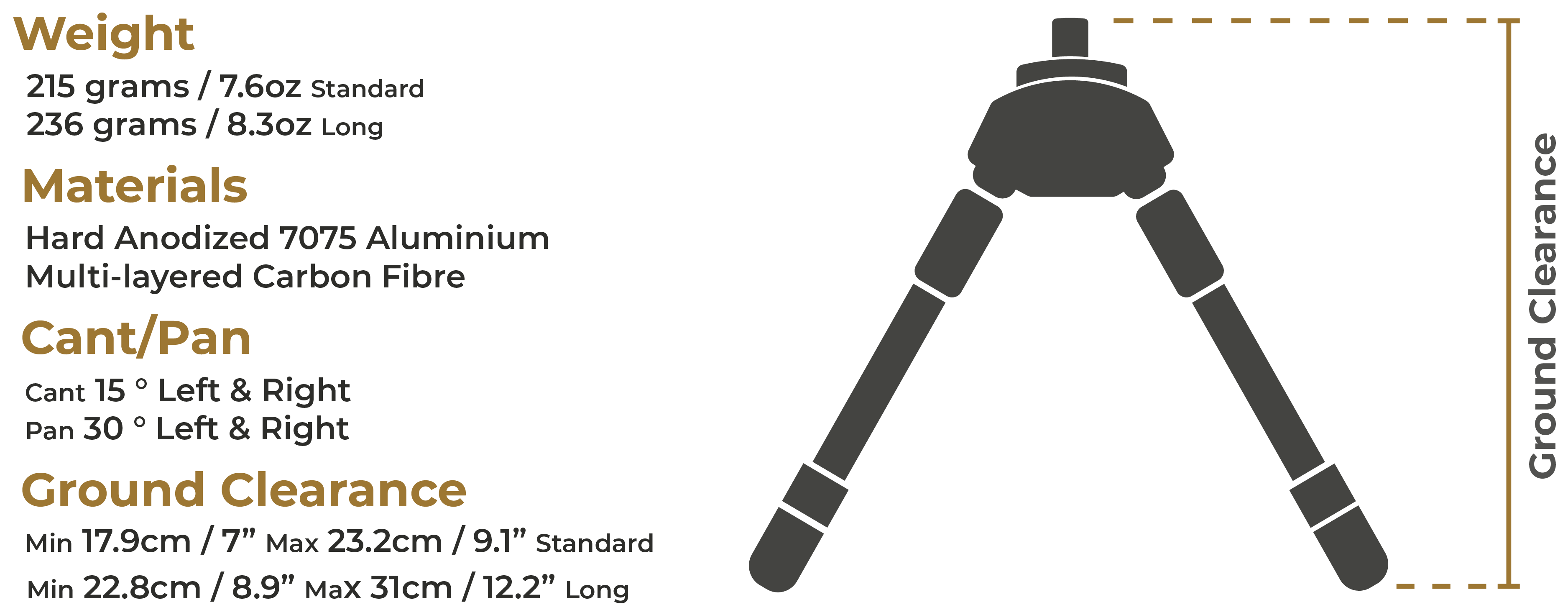 Das Javelin ProHunt TAC, die Weiterentwicklung der Javelin Serie geht weiter. Das ProHunt TAC hat federgelagerte, rastenverstellbare Beine für eine schnelle Anpassung an den Untergrund. Konstruiert und entwickelt, wie alle Spartan Produkte in Sussex, England. Natürlich nur aus den hochwertigsten Materialien auf höchstpräzisen CNC Maschinen gefertigt, an der Waffe innerhalb von Sekunden montiert und dank wenig Gewicht der perfekte Begleiter bei längeren Pirschgängen.