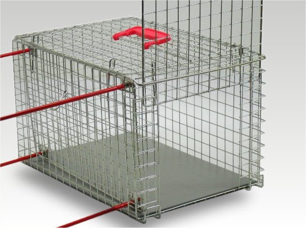 Professionelle Umsetzbox für Kleintiere wie Katzen etc., welche aus einer Falle transferiert/umgesetzt, transportiert sowie fixiert und behandelt werden können.